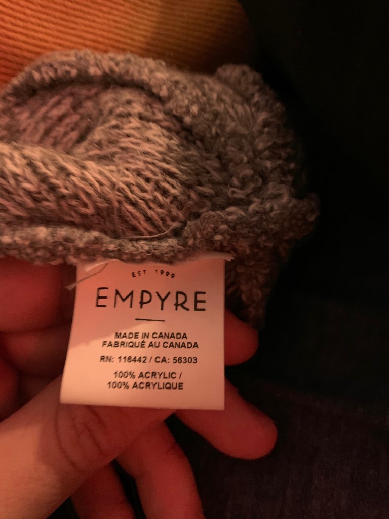 This slouchy fit beanie features a 100% acrylic construction in a marbled grey and white colorway. With a faux suede logo tag on the hem and super soft feel, the wool beanie is a must have addition to your cold weather hat collection. It keeps me warm and a bit cozy. I can wear it with anything because it’s grey. Made in Canada they make everything from sweaters and tees to full suits and outerwear. Their clothing follow a less is more design approach, often with clean look , almost though they usually have flannels and button downs in more dynamic patterns.